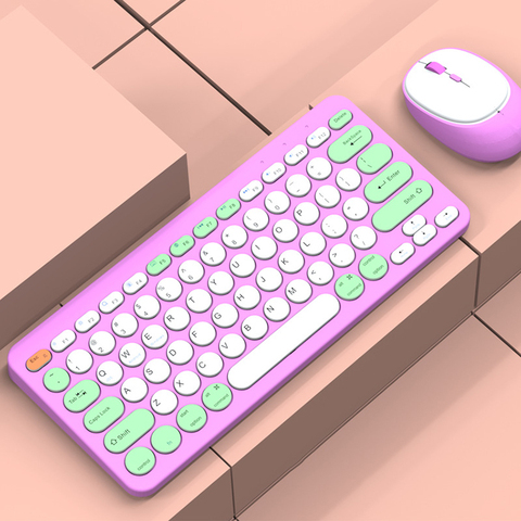 79 teclas recarregável Bt e 2.4G mini teclado e mouse roxo colorido sem fio
