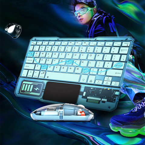 Cristal transparente tablet teclado e mouse sem fio para o telefone móvel