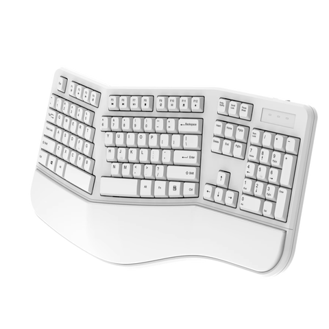 Venda quente teclado split ergonômico sem fio com descanso de palma, teclado silencioso ergonômico recarregável tamanho completo para escritório doméstico